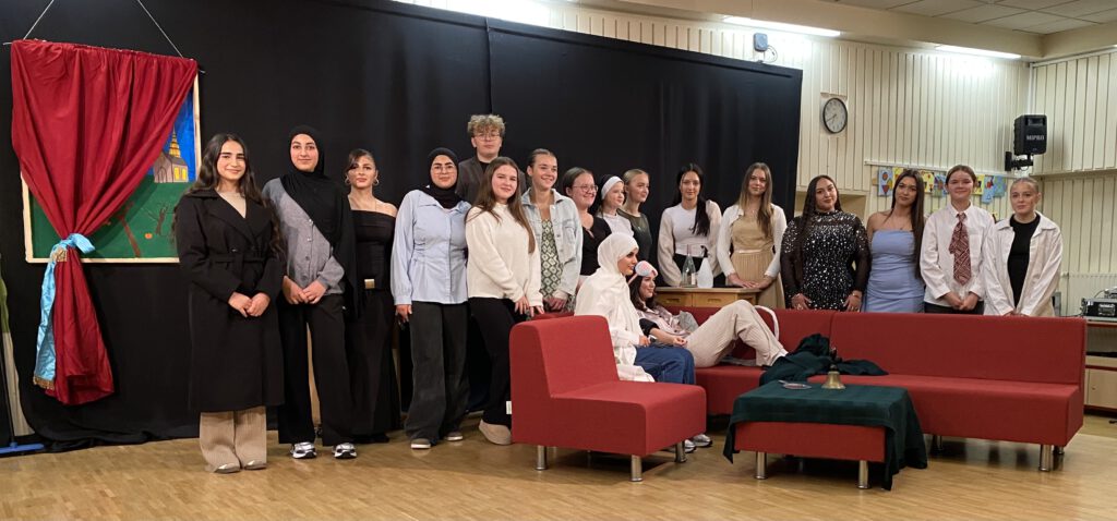 Von links: Frau Hoffmann, Rektorin, DL; Herr Duppelfeld, Leiter des Museums, Frau Bannenberg, Vertreterin der Fachschaft GL
